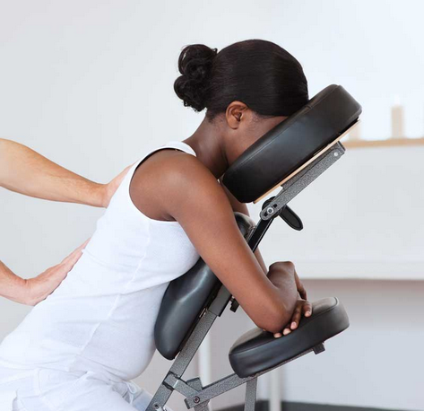 Take a load off with a 5 minute chair massage courtesy of licensed massage therapist Eslyne Thompson, LMT.